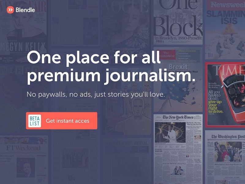 Blendle helps you find the best journalism, written by the greatest newspapers and magazines in the world. Without ads. Without paywalls. You only pay for the stories you love. And like Spotify's Discover Weekly, it gets better the more you use it.
