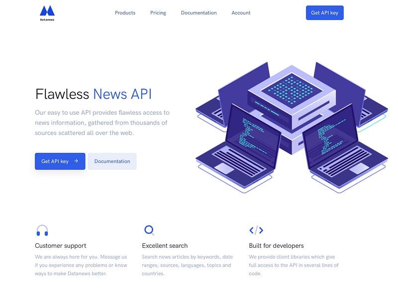 Datanews is fast and reliable API for seaching and monitoring news. It collects millions of articles from thousands of sources and gives you access to them via a simple HTTP JSON REST API.