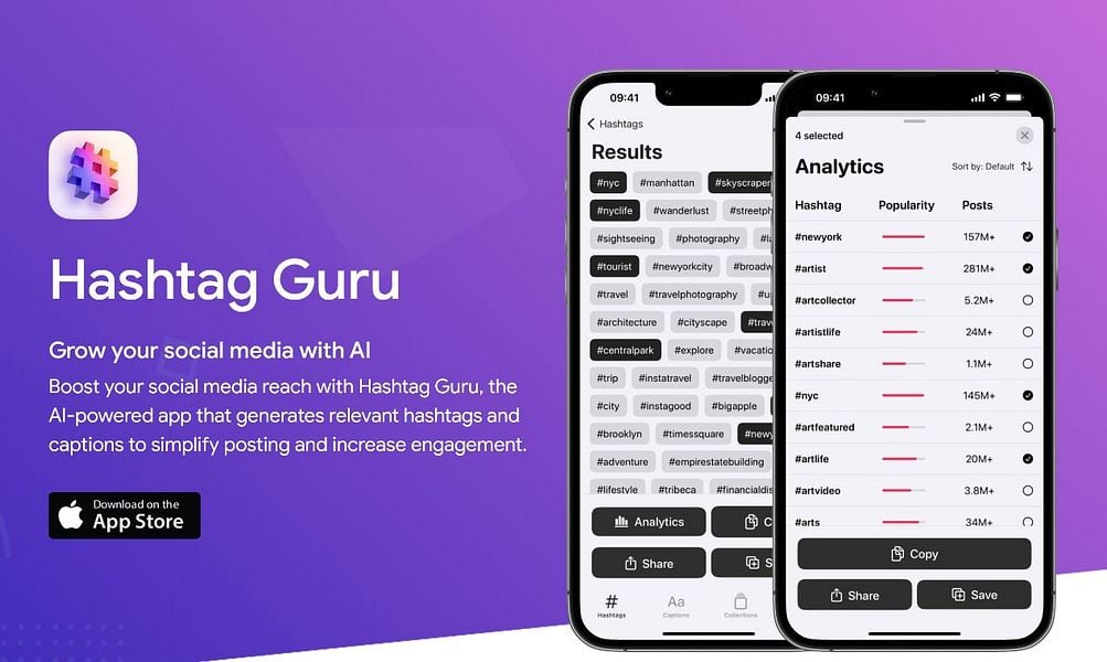 Hashtag Guru; Struggling with engagement on Instagram? Boost your social media reach with Hashtag Guru, the AI-powered app that generates relevant hashtags and captions to simplify posting and increase engagement. It helps you find the most popular hashtags based on your captions and images.