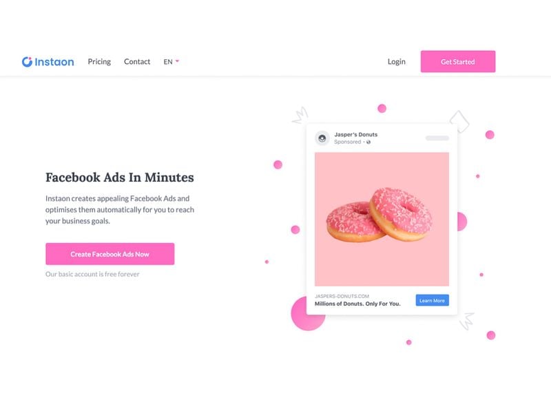 Instaon is a fully automated advertising agency based on AI that suggests, creates and optimises paid marketing campaigns for SMBs. Clients indicate their online advertising goal and credit their advertising budget on Instaon. The platform then automatically creates the different ad accounts, ad campaigns and optimises them on the most relevant channels, such as Google, Microsoft, Facebook, Instagram.