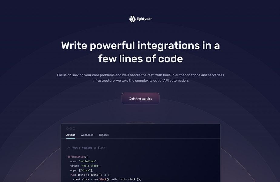 Lightyear helps developers write powerful integrations in a few lines of code. Focus on solving your core problems. With built-in authentications and serverless infrastructure, Lightyear takes the complexity out of API automation.