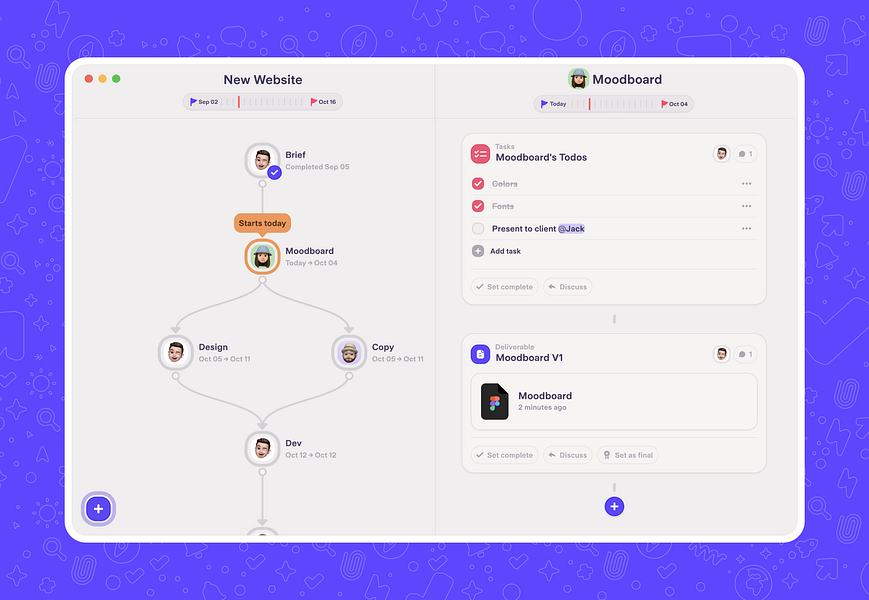 Logbook puts your projects on autopilot with a living roadmap. Built on top of a proven method, the critical path algorithm, Logbook coordinates work and people for you on the day-to-day. It generates an automated schedule, gives you a continuous overview of your progress, and holds your hand every step of the way to deliver on time. Despite all the tools and methods we have (Gantt, Kanban... on Asana, Notion…) it’s still painful to coordinate projects. It requires so much time, effort, and discipline...