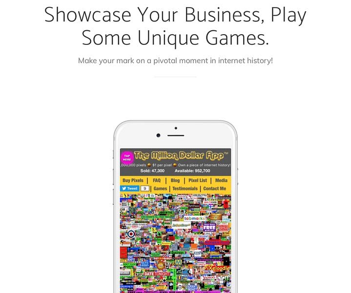 **Million Dollar App* is part art experiment, part financial experiment, and part gaming platform.