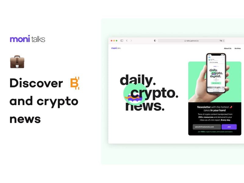 Moni Talks, every day, we hand-pick the hottest news from 250+ sources (200+ major Twitter accounts, 40+ telegram & discord channels, 20+ news channels) and pack it in 5 minute reads. Spice it up with fun and friendly approcah to writing, personal opinions on major events and you'll get a full picture of what Moni Talks is about: NO sweat, NO FOMO.
