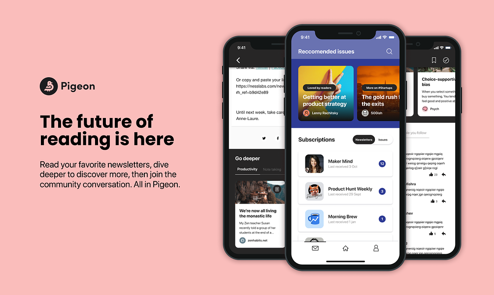 Pigeon Inbox is an app that allows you to read your favorite newsletters, dive deeper to discover more, then join the community conversation. People are transitioning away from writing blog posts and are move to writing newsletters instead. However the reading experience of an email inbox is awful, and the quality of content in educational and informative newsletters deserves a better place to be read.