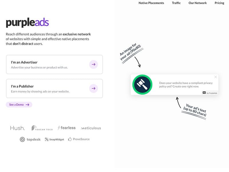 PurpleAds is a great way to reach different audiences worldwide through an exclusive network of websites, effortlessly.