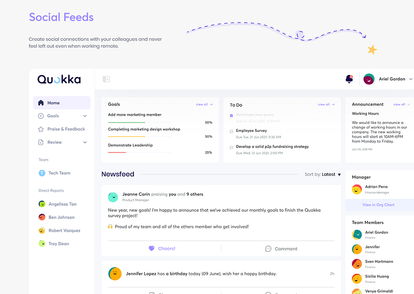 Quokka HR is performance and engagement platform designed for small teams and startups. We have OKR goal, praise and feedback, performance review modules all in one place.