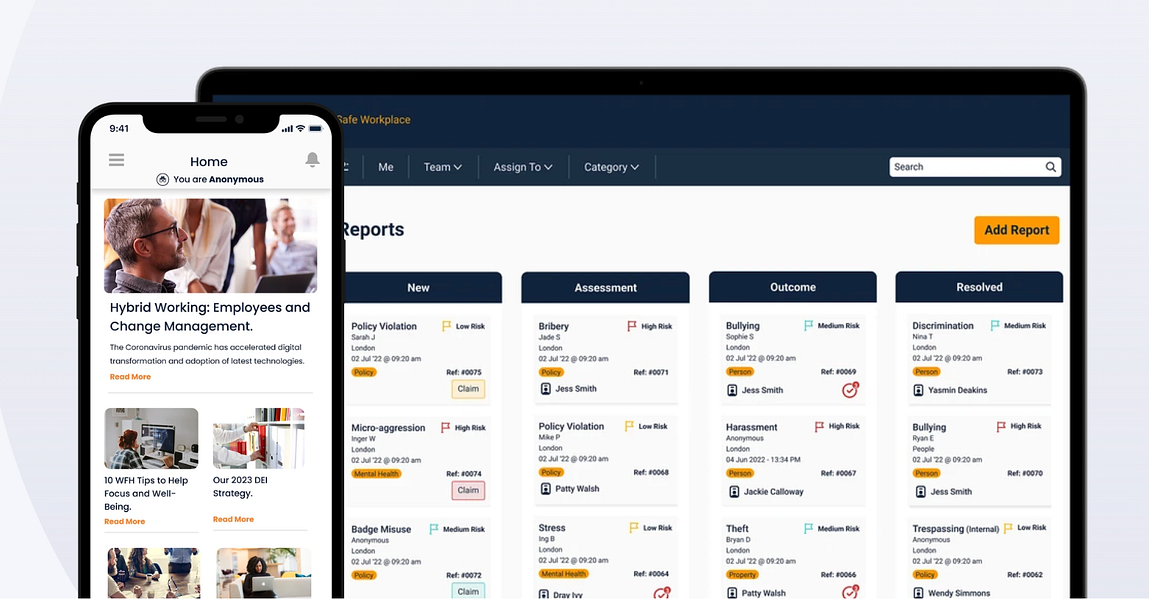 Safe Workplace is the world's first effective solution to Case Management, Employee Report and Support, Training and Wellbeing, measured by outcomes.
