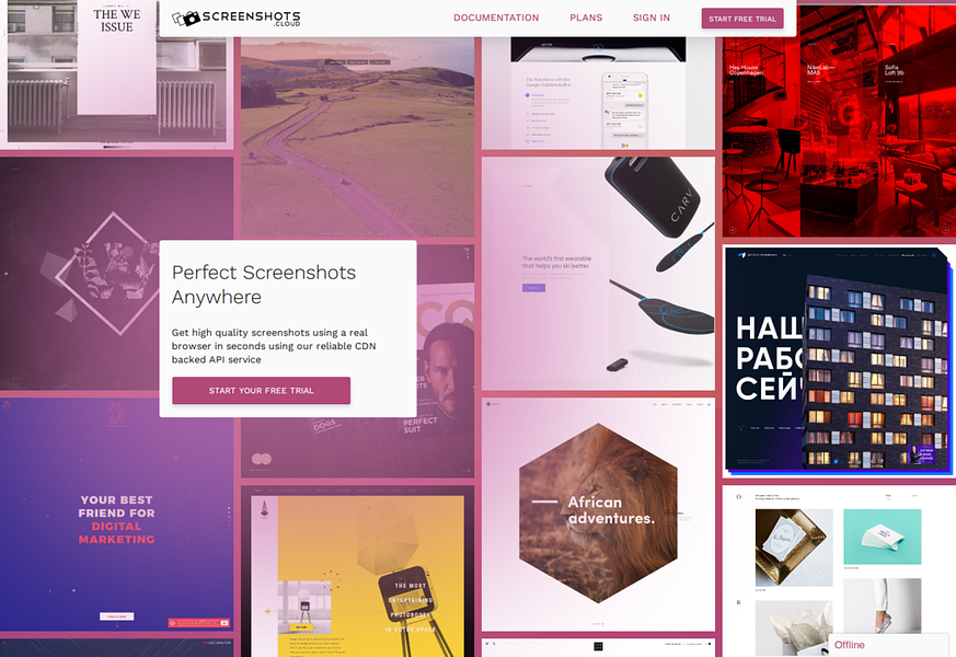 ScreenshotsCloud allows you to take screenshots of any website using a real browser with properly smoothed fonts. We make sure to trigger lazily loaded images and automatically close marketing popups so you always get the screenshot you want to take. We also support the latest technology like SVG, Canvas, WebGL, Flexbox and CSS Grids if you're trying to take screenshots of modern pages!