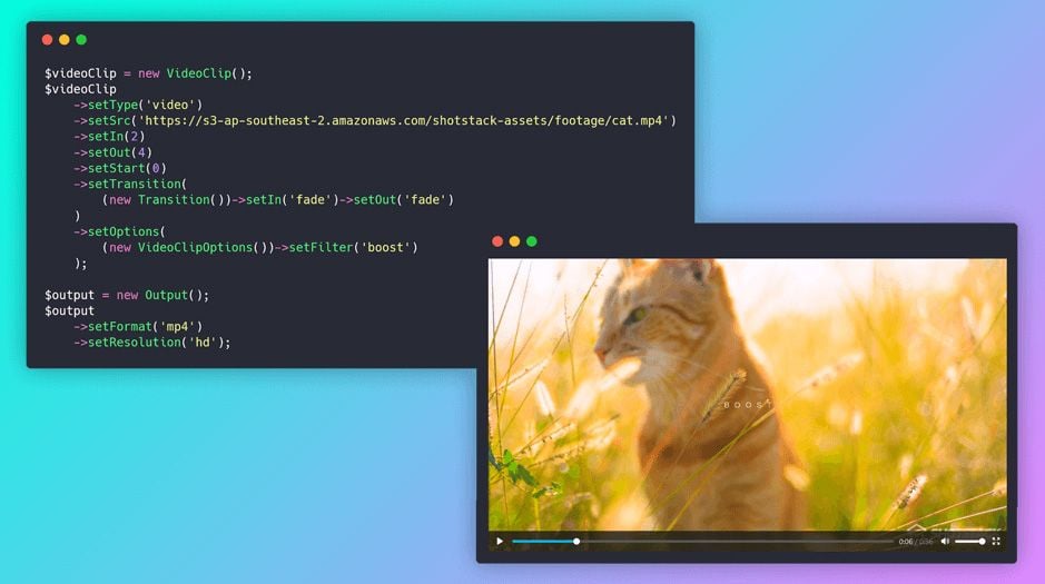 Shotstack is a cloud based video editing API that helps developers build video centric applications, workflows and campaigns. We take away of all the complexity involved in developing, managing and maintaining the infrastructure needed to process and edit video, saving them time and money.