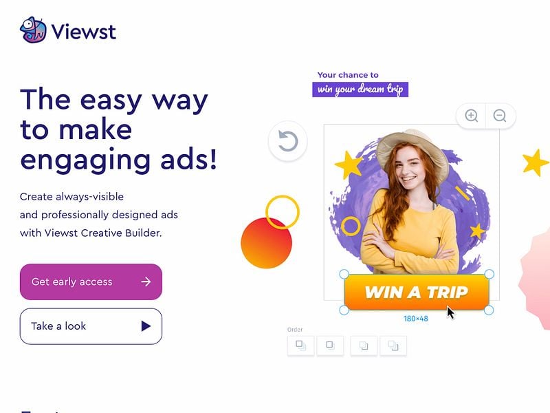 Viewst gives users with little to no design experience the ability to create professionally‑designed ads from scratch in minutes. Businesses can run ad campaigns faster and design the ads themselves. Don’t waste time searching for contractors, dealing with paperwork, or waiting for corrections to be made. With Viewst you can make banner ads without any experience in design, animation, or coding.