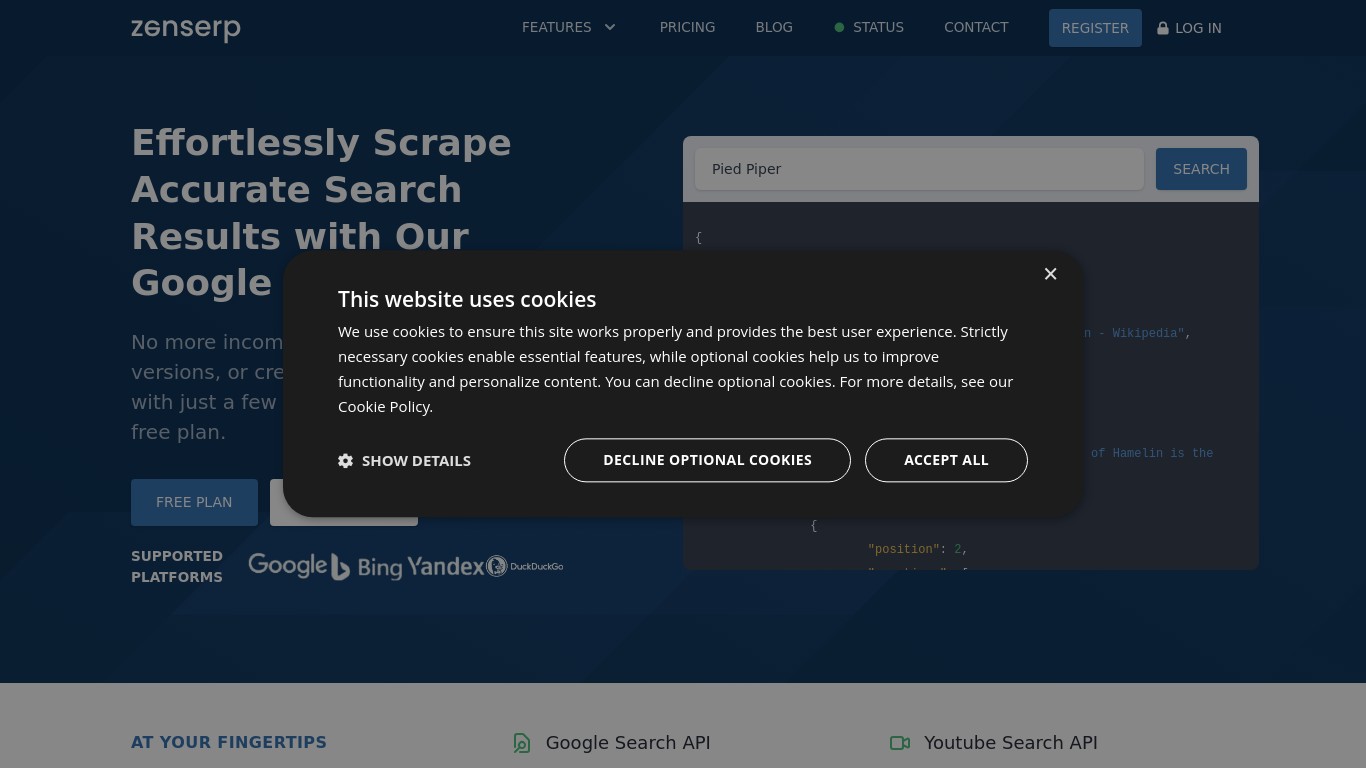 Zenserp is not endorsed or affiliated by any search engine prodiver in any way and does not make use of any API provided by any search engine.